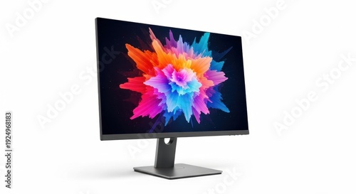 Modern Computer Monitor Displaying Vibrant Abstract Art on Screen.