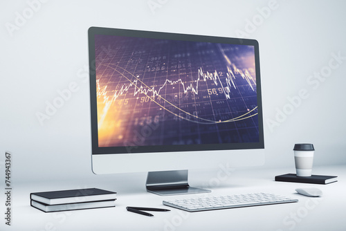 Modern computer screen with abstract financial diagram, banking and accounting concept. 3D Rendering