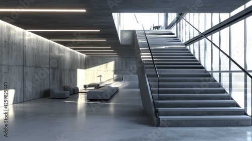 Modern Concrete Architecture: Minimalist Interior Design with Staircase and Sunlight