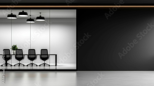 Modern Conference Room Interior Design with Black Chairs and Lighting Fixtures Space for Business Meetings