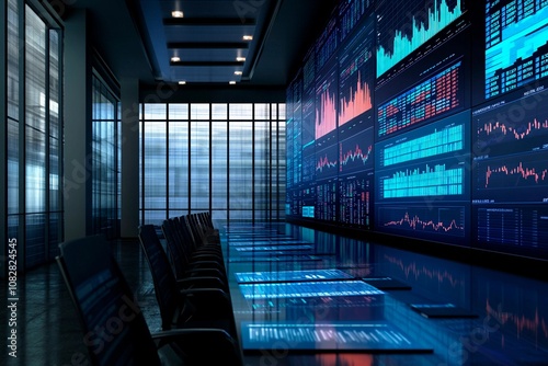 Modern conference room with data displays during a crucial meeting on Generative AI