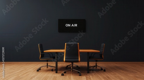 Modern Conference Room with ON AIR Sign and Minimalist Design for Professional Settings and Broadcasts