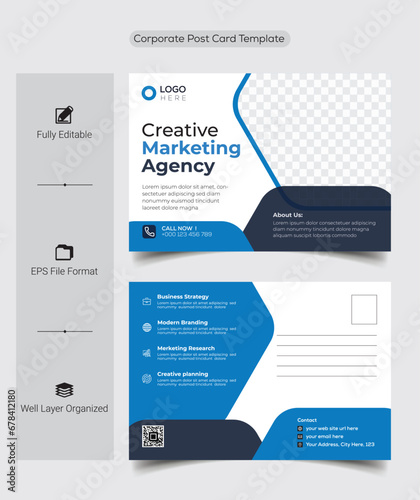 Modern Corporate business postcard, digital marketing agency postcard design, EDDM Postcard, suitable for Landscape flyer or Landscape brochure cover design