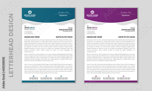 Modern corporate clean and professional business letterhead design template with color variation and bundle