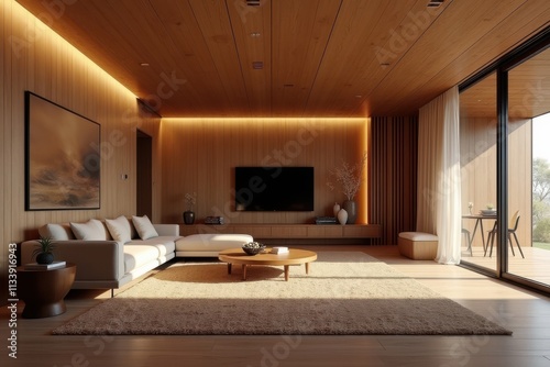 Modern Cozy Living Room with Natural Light and Warm Wood Accents