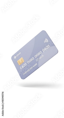 Modern Credit Card Floating in Air with Shadow on White Background.