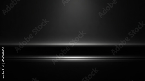 Modern dark studio background with soft light and reflective stage