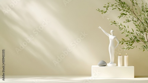 Modern decor with a white sculpture and natural elements on a light background.