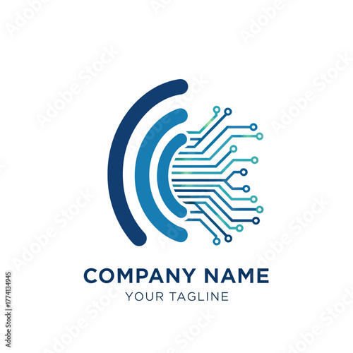 Modern Digital Circuit Board and Signal Waves Logo Design.