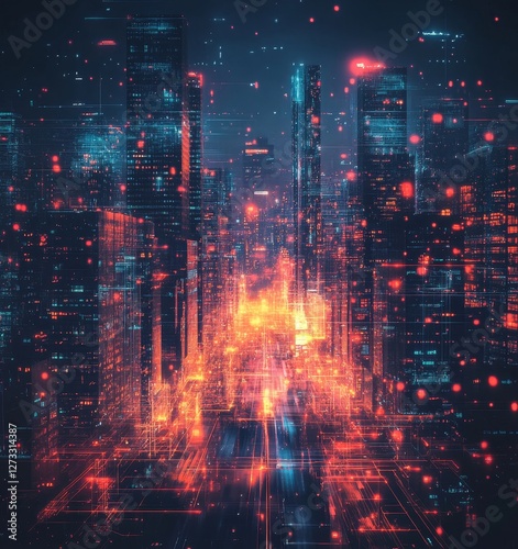 Modern Digital Cityscape with Abstract Elements, Generative AI