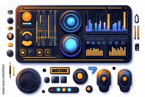 Modern Digital Control Interface with Colorful Graphs and Buttons