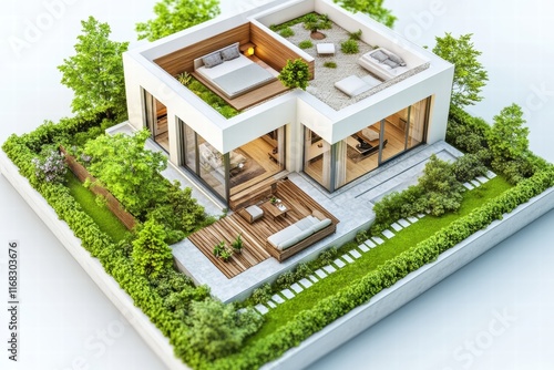 Modern Eco-Friendly House Architectural Model with Green Roof and Garden
