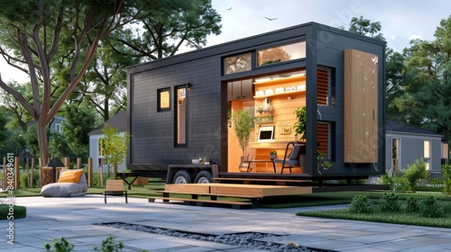 Modern EcoFriendly Tiny Home Community Showcasing Sustainable Living and Design Consultations with Blank Business Cards