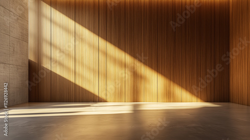 Modern Empty Interior room with Wooden Panels and Ambient Lighting