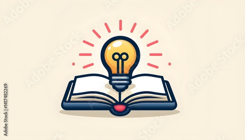 Modern flat design of open book and lightbulb icon using minimalist elements and soft tones on white background