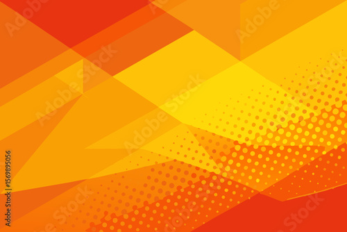 Modern geometric background with orange and yellow triangles and halftone dots