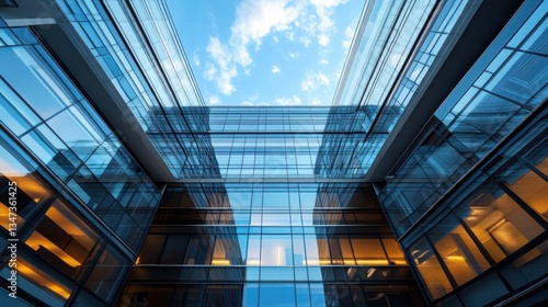 Modern Glass Skyscraper Architecture, Stunning Upward View