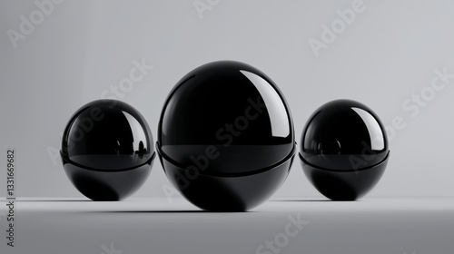 Modern glossy black spheres on a minimalist surface.