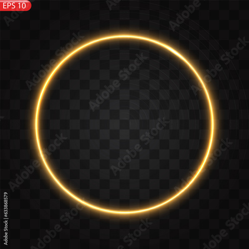 Modern gold shiny vintage frame isolated on a transparent background. Golden glowing circle frame. Abstract background. Luxury realistic element of wedding decor. Vector illustration EPS10