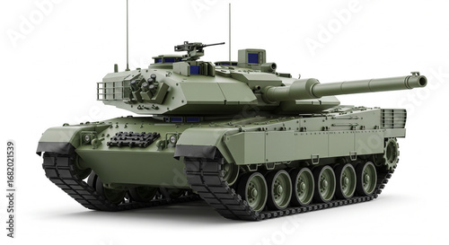 Modern Green Military Tank Ready for Combat on an isolated transparent background, symbolizing power and defense