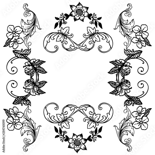 Modern greeting card, with sketch design of frame for pattern foliage and flower. Vector
