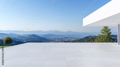 Modern home balcony panoramic mountain view luxury real estate serenity