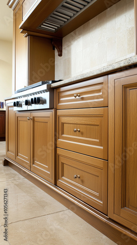 modern honey oak cabinets in a transitional kitchen