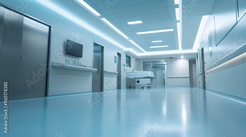 Modern Hospital Corridor with Illuminated Wall and Ceiling Design