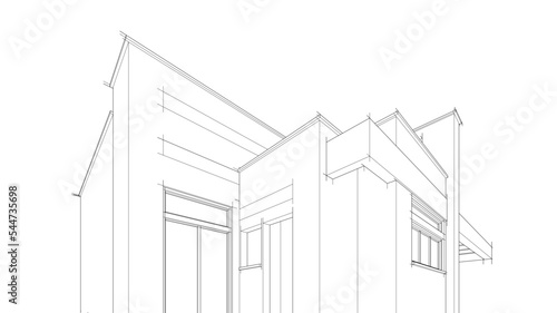 Modern house architectural drawing 3d illustration