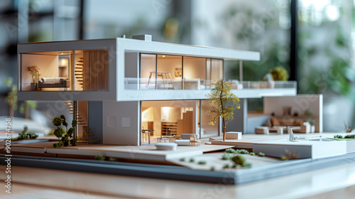 Modern House Model with Integrated Greenery and Elegant Interior
