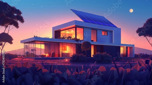 modern house with solar panels at sunset ecofriendly architecture concept sustainable living digital illustration