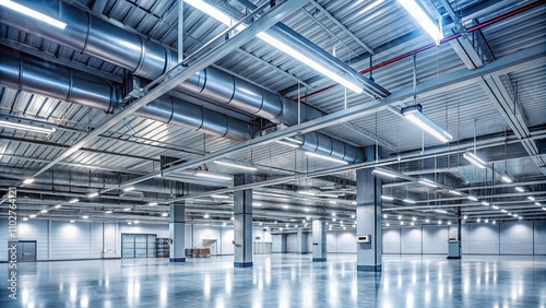 Modern industrial interior featuring fluorescent lighting and ventilation system, industrial, interior