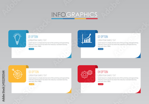 Modern Info-graphic Template for Business with four steps multi-Color design, labels design, Vector info-graphic element, Flat style vector illustration.