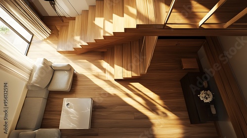 Modern Interior Design with Wooden Stairs and Sunbeams