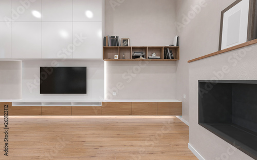 Modern interior kitchen living room. 3D-visualization