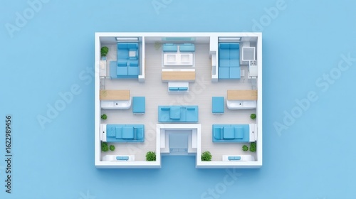 Modern interior layout showcases functional spaces with soothing