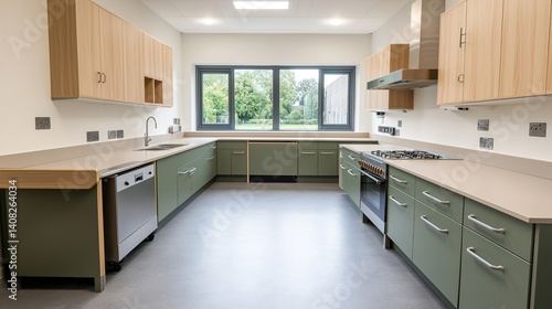 Modern kitchen design residential home interior photography bright environment wide angle functional aesthetics