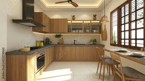 Modern Kitchen Interior with Natural Wood and Bright Open Space