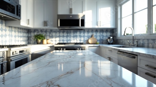 Modern Kitchen with Marble Countertops and Blue Backsplash Design