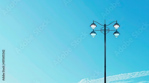 Modern lamp post with a bright blue sky, minimalist background