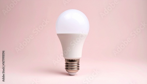 Modern LED light bulb with opaque white dome, ribbed midsection, and metallic screw base on white background