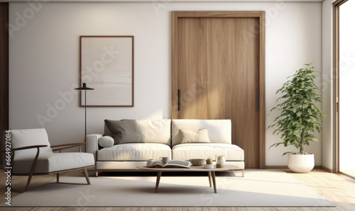 Modern living room interior with door 3d rendering