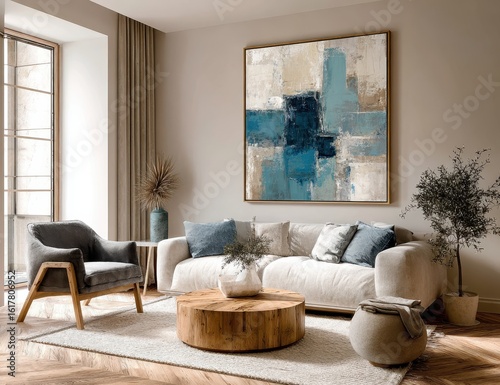 Modern living room with abstract art