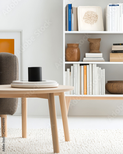 Modern living room with minimalist design showcasing stylish furniture and decor