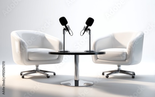 Modern Lounge Chairs with Microphones in Minimalist Setup