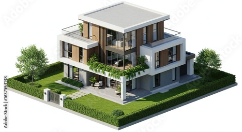 Modern Luxury House with Green Lawn and Contemporary Design for Real Estate Promotion or Architectural Visualization Presentation