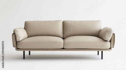 Modern minimalist beige leather sofa with sleek metal legs
