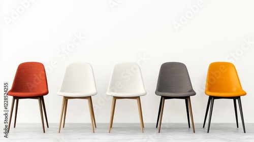 Modern Minimalist Chairs in a Row Against a White Wall Background