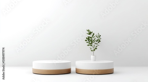 Modern minimalist display podiums with plant