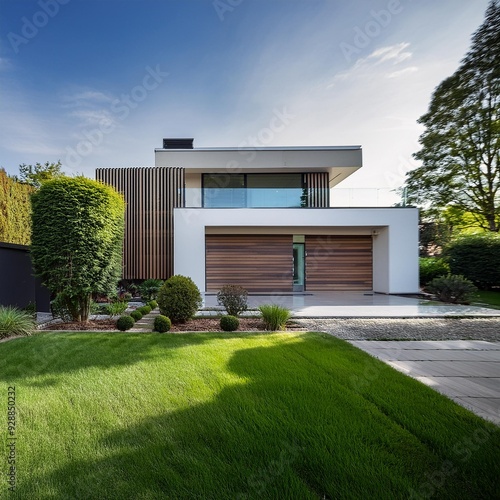 Modern Minimalist Home Exterior with Greenery and Minimalist Design